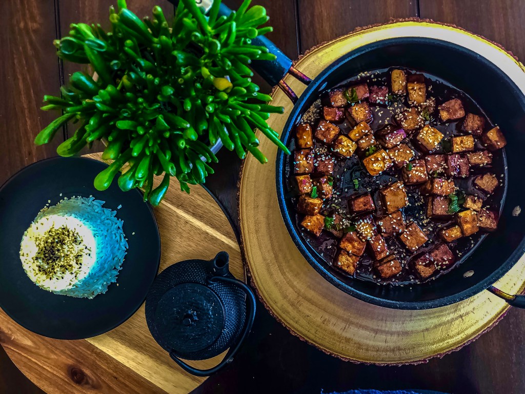 Gochujang, a traditional Korean red pepper paste has a sweet and spicy taste and goes so well with any protein, vegetarian or non vegetarian. Gochujang generally contains red chili powder, fermented soybeans, rice wine, glutinous rice and salt. This tofu dish is easy and so very tasty. Make sure you’ve squeezed all the water out of the tofu. I usually place a towel on the tofu for about an hour so that all the water gets completely soaked up. @sarchakra