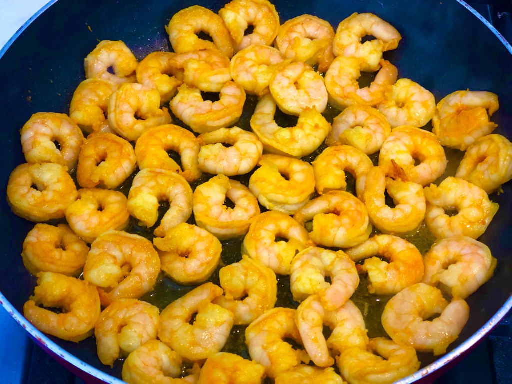 - Coat shrimp with salt and turmeric.
