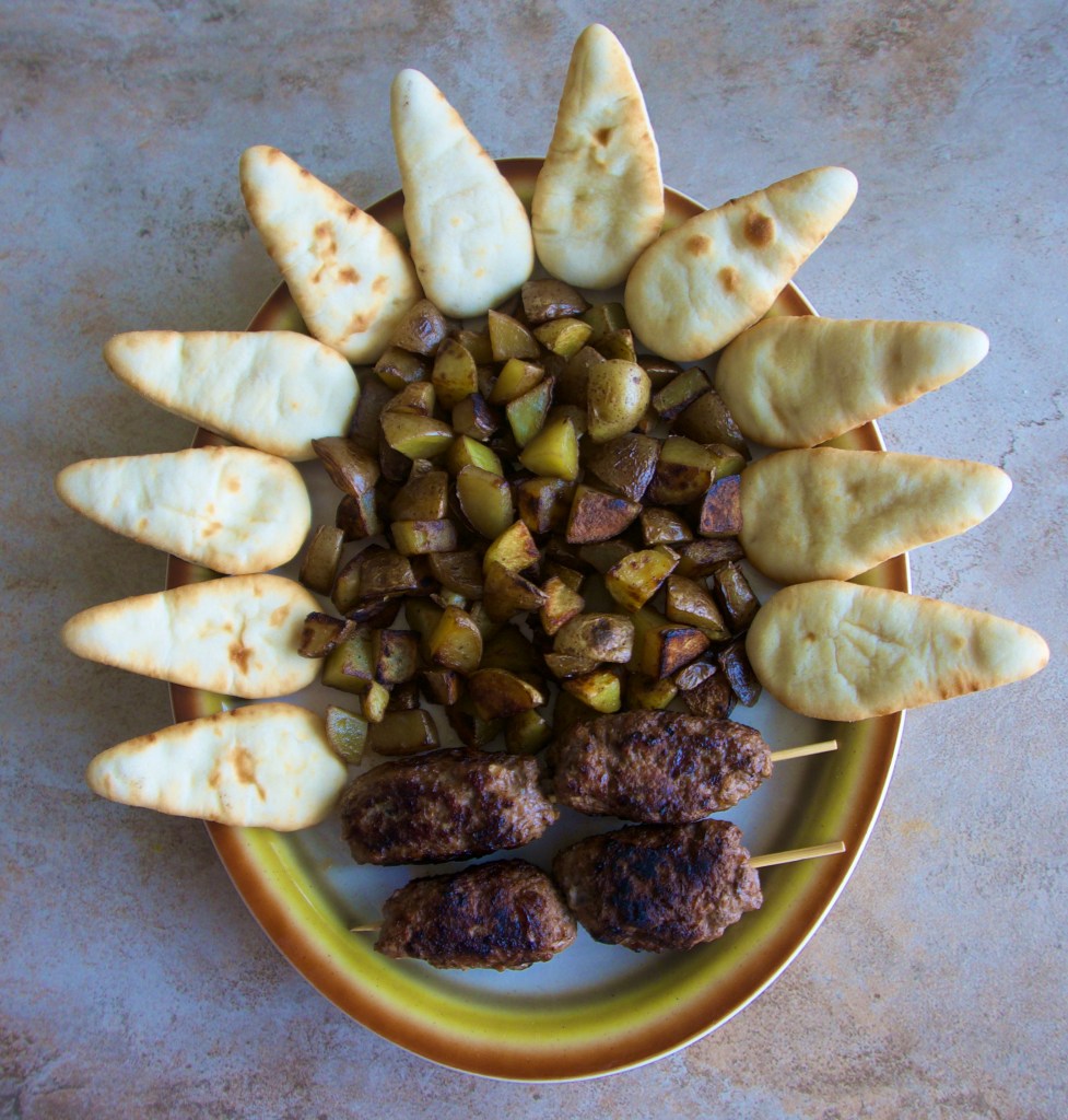 - Serve lamb kofte with potatoes and mini Naan breads.