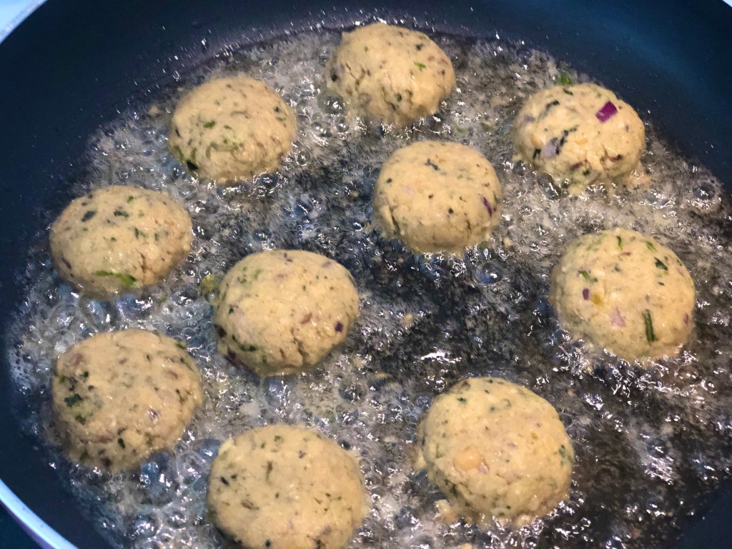 - Heat oil. Pan fry 5-6 patties at a time. Drain in kitchen towel. Serve with salad and toasted Naan bread.