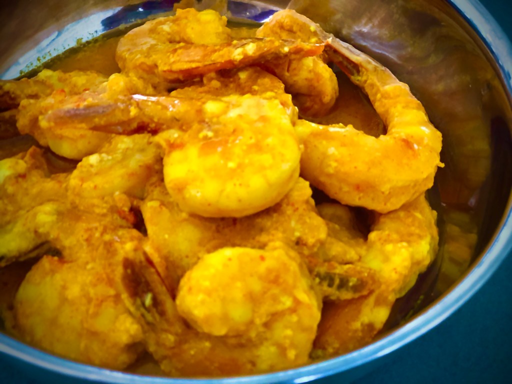 This is the Bengali way of cooking prawns or shrimp in steam with mustard paste. Traditionally black or white mustard seeds are soaked and made into a paste but this is a super quick two-step recipe using yellow mustard. It works equally well with a fraction of the time. I bought shrimp that was already deveined and cleaned so the time taken will be slightly longer if you have to clean the shrimp yourself.