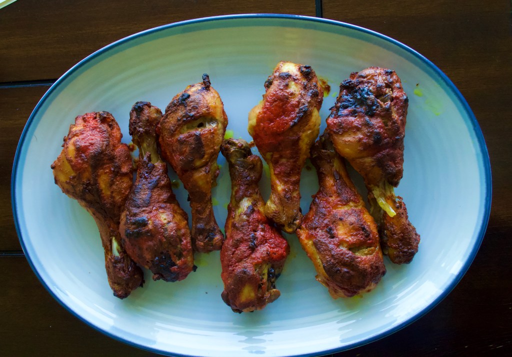 Tandoori Chicken needs no introduction. The key to a good tandoori chicken is marination and a tandoor. Cooking it at home without a tandoor you can get that charred effect by using the broil mode in the oven in the last few minutes of cooking @sarchakra