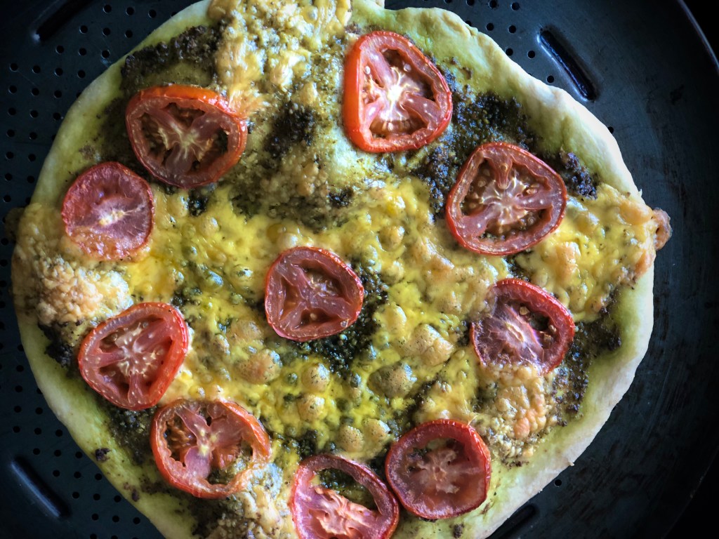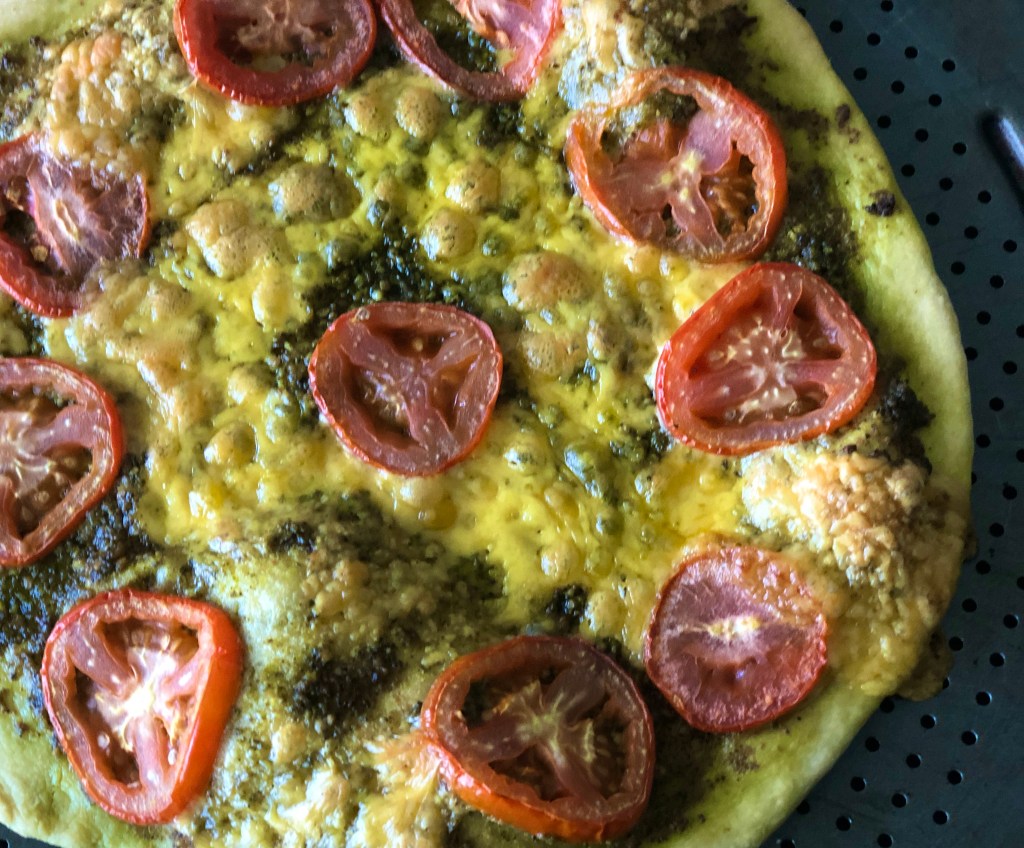 The crust recipe is the same as in the post https://sarchakra.com/2020/05/06/veggie-pizza/ The toppings are the only difference in this recipe. The cashew pesto recipe is the same as I used for the puff pastry swirls https://sarchakra.com/2020/04/18/cashew-pesto-salsa-twirls/ While the veggie pizza had a tomato salad base with lots of veggies, this one has a plain pesto, tomato and cheddar cheese topping @sarchakra