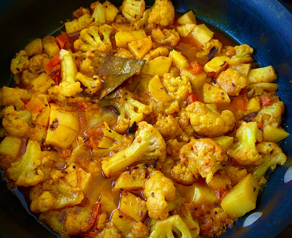 This is a simple hearty recipe with cauliflower and potatoes in a thin sauce, ie. jhol. It tastes best with some cooked basmati rice or luchi. Cauliflower is so readily available in Rochester I end up buying it every single week. Today’s recipe is a very popular dish in quintessential Bengali cuisine. Although this recipe is usually cooked in mustard oil, I’ve used regular vegetable oil here and added a bit of ghee at the end for that special flavor @sarchakra