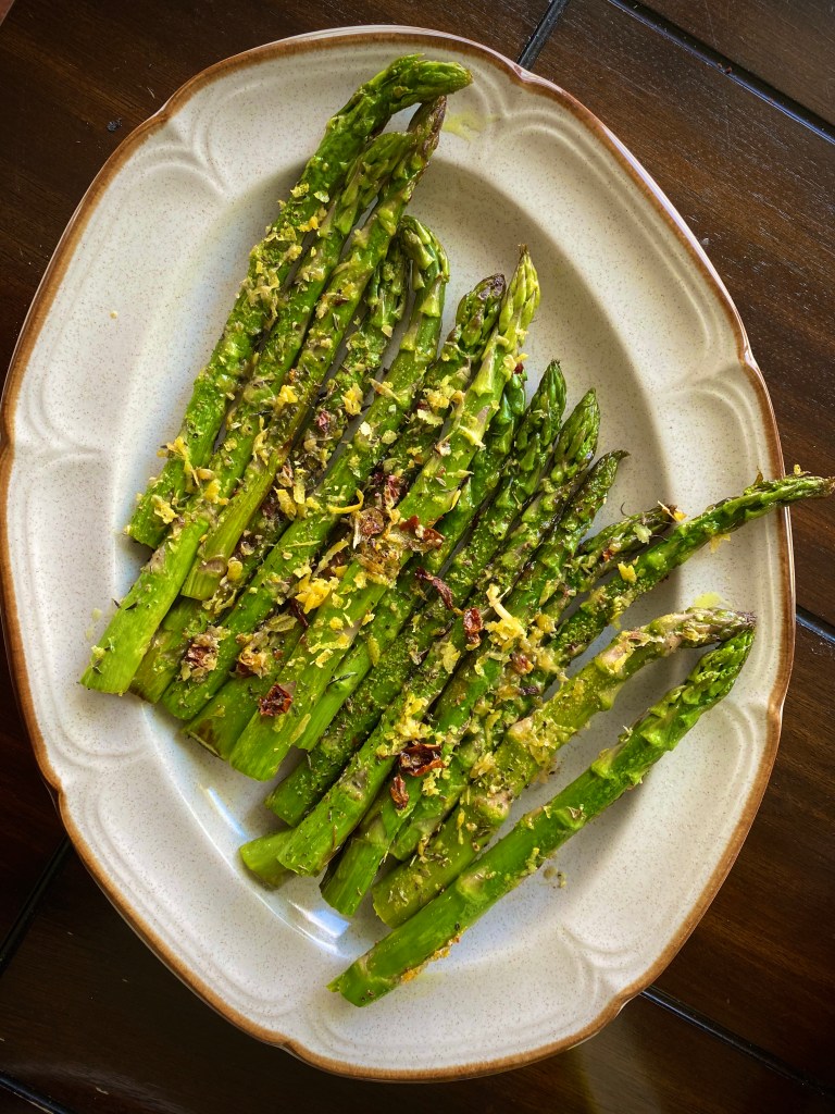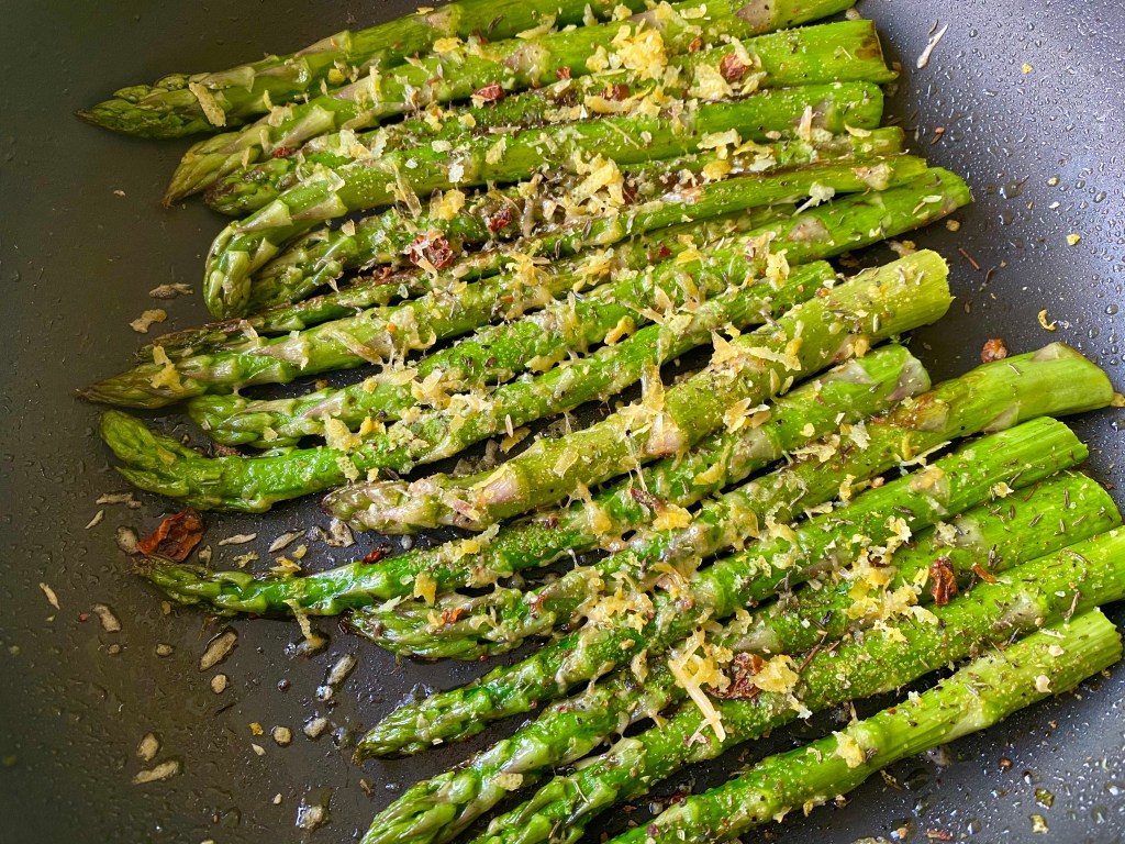 This is a simple recipe ready in no time at all. The trick is to not overcook the asparagus. You should still feel the crunch when you bite into it. I like to serve this with a pasta dish. This recipe is super quick and I would suggest to not cook it until you are ready to serve or eat. It is best eaten and enjoyed when done fresh @sarchakra
