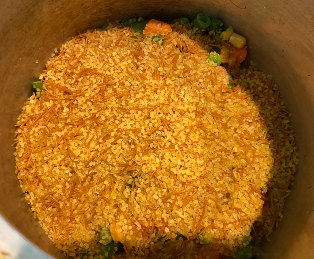 - Add in the cracked wheat and toasted vermicelli. Let everything cook, stirring intermittently so it doesn’t burn.