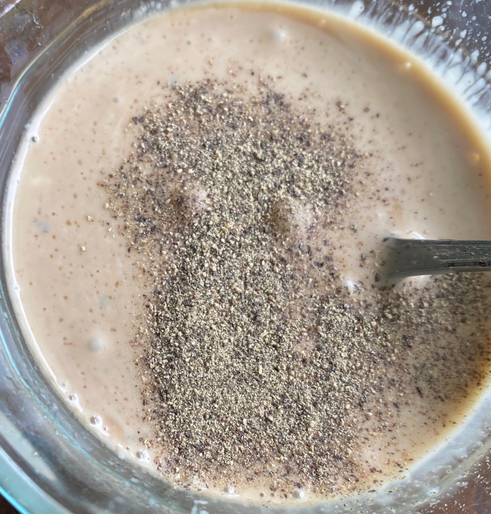 - Mix together in a bowl the following: mayonnaise, sour cream, buttermilk, salt, black pepper, garlic powder, onion powder.