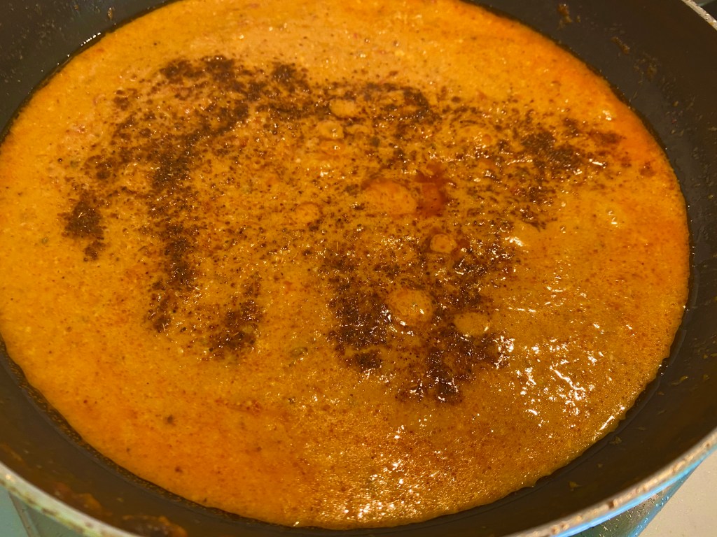 - Add the mawa. Let the mawa melt into the gravy. Add 1 cup of water. Cook covered for 10 mins or so till the oil floats. Turn the heat off.