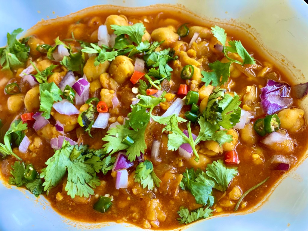 Chana Masala or Chole (chickpeas) Masala is a very popular North Indian street food full of flavor. This recipe has a special blend of spices called the Chana Masala mix. You can make the spice at home with ingredients from an Indian pantry or buy it readymade from an Indian grocery shop. Traditionally the first step to making Chana Masala is soaking the chick peas overnight and then slow cooking it in a pan or a pressure cooker. The good thing about using a slow cooker is that you can literally turn it on, set a timer and go about your business-there is no babysitting involved and trying to make sure nothing gets burnt etc. Also, there is no frying or sautéing anything beforehand in this recipe. You can make the Chana Masala powder in bulk and store in the fridge or in a dark cupboard @sarchakra