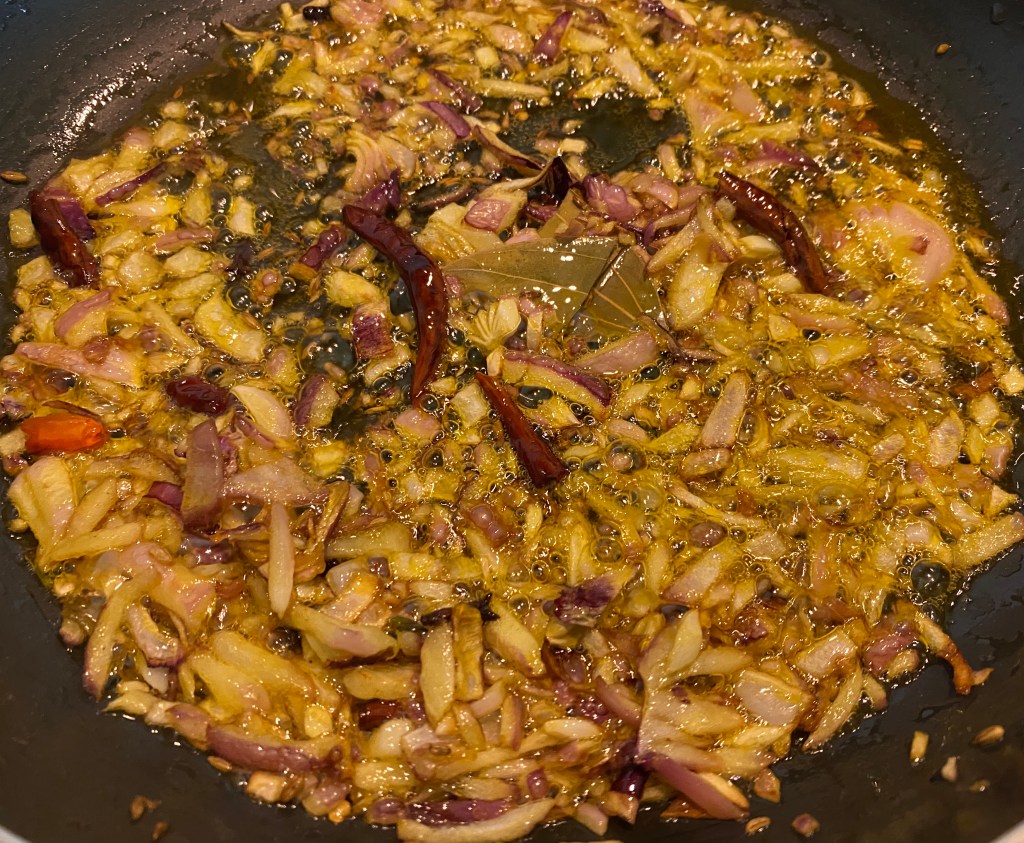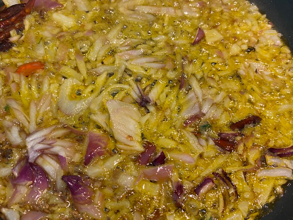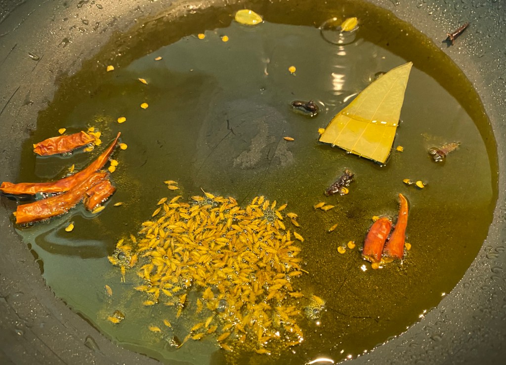 - Whole red chilies 3, broken