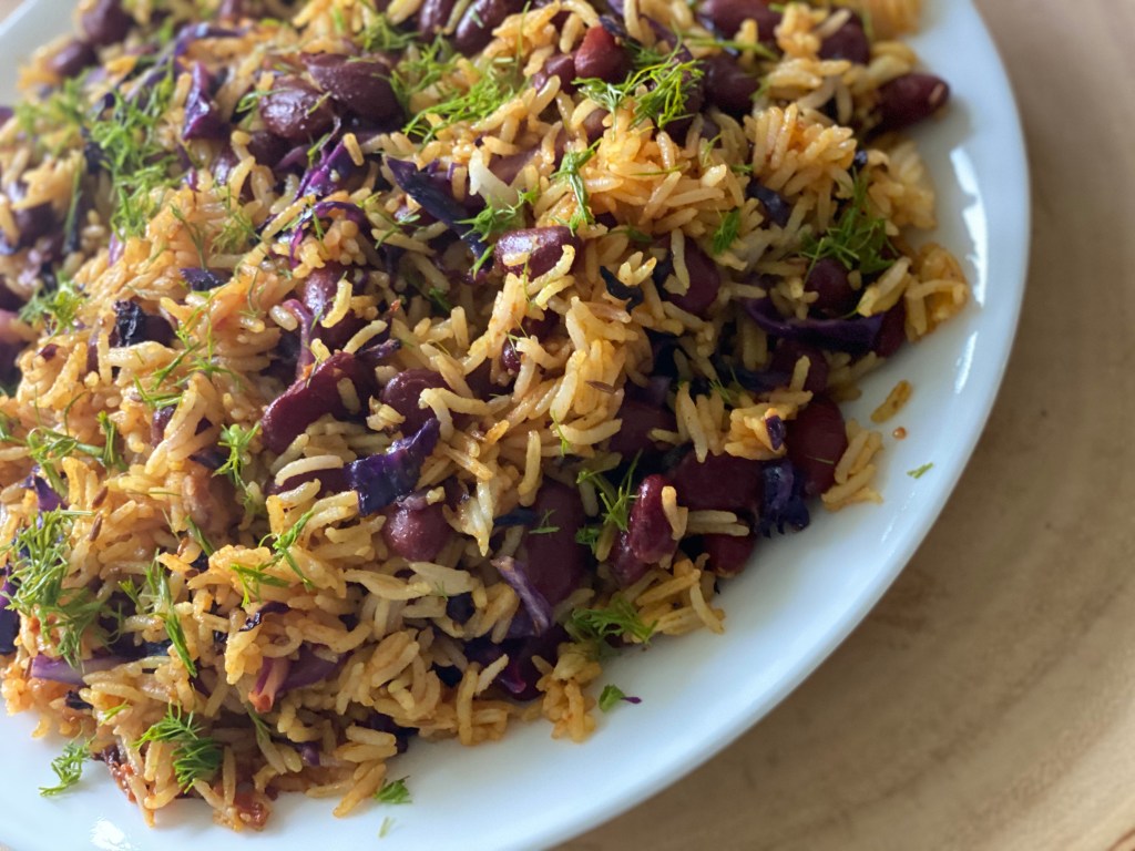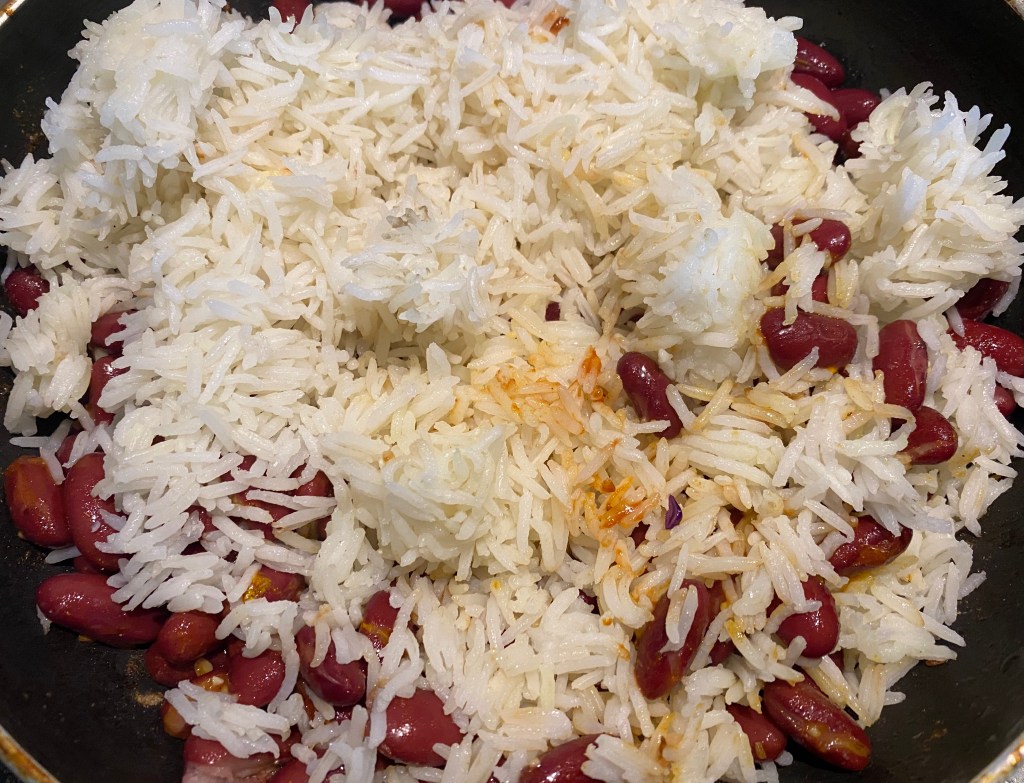 This is a simple, nutritious recipe made from leftover rice. Make it for a quick weeknight dinner or make a bigger portion for a crowd. Since the beans and rice are already cooked the dish is done in a jiffy. I used basmati rice here but any long grained rice will do. For a healthier option, use brown rice or other grains like farro, quinoa, barley, millet, buckwheat or amaranth @sarchakra