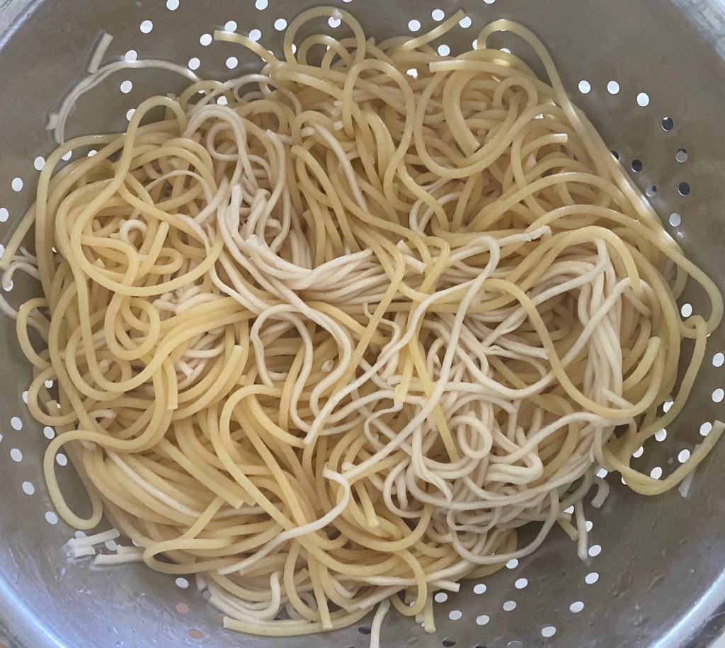 - Cook the Hakka noodles according to package directions. Drain the noodles. Add 1 tbsp of oil and mix into the noodles.