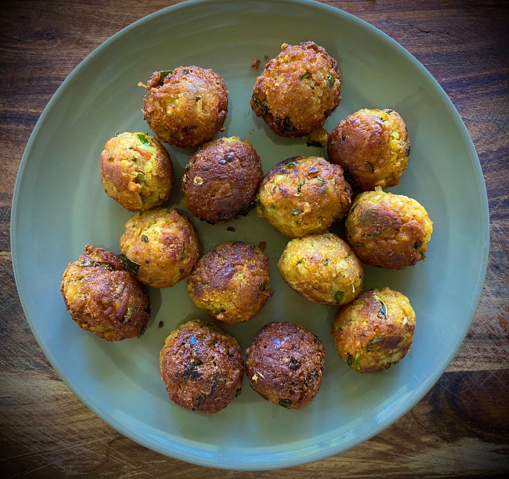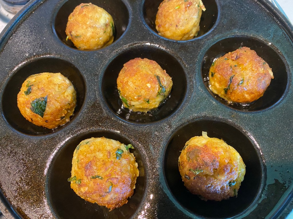 - Let one side cool till golden brown before using a fork and gently turning the other side. Repeat for the rest of the balls. Make sure they are cooked evenly on both sides. Serve hot.