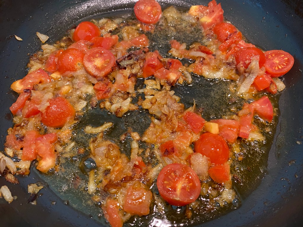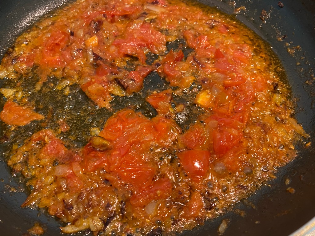 - Let it cook for a few mins. Mash the tomatoes gently with a potato masher. Let it cook till the oil floats.