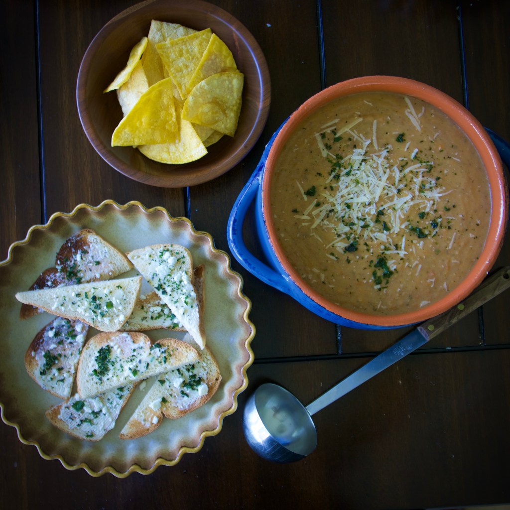 - I’ve served here with toasted bread with garlic butter and topped with feta cheese and chopped basil. It is simple but simply delicious.