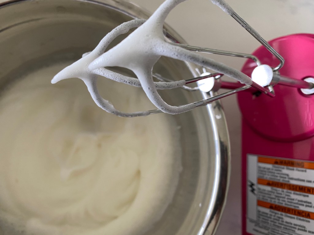 - In another bowl beat egg whites till you get soft peaks. Add the dates syrup. Fold everything in gently till well combined.