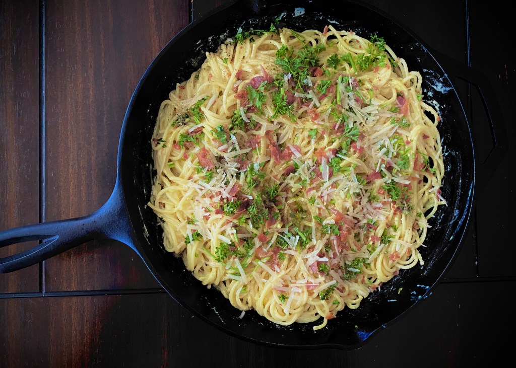 Carbonara requires very few ingredients but is one of the most indulgent of meals. Crunchy bacon bits in a creamy sauce with spaghetti sounds amazing right? The best part of this recipe is that it is so easy and tastes like you are some kind of culinary expert! Trust me and try this super easy pasta dish. @sarchakra