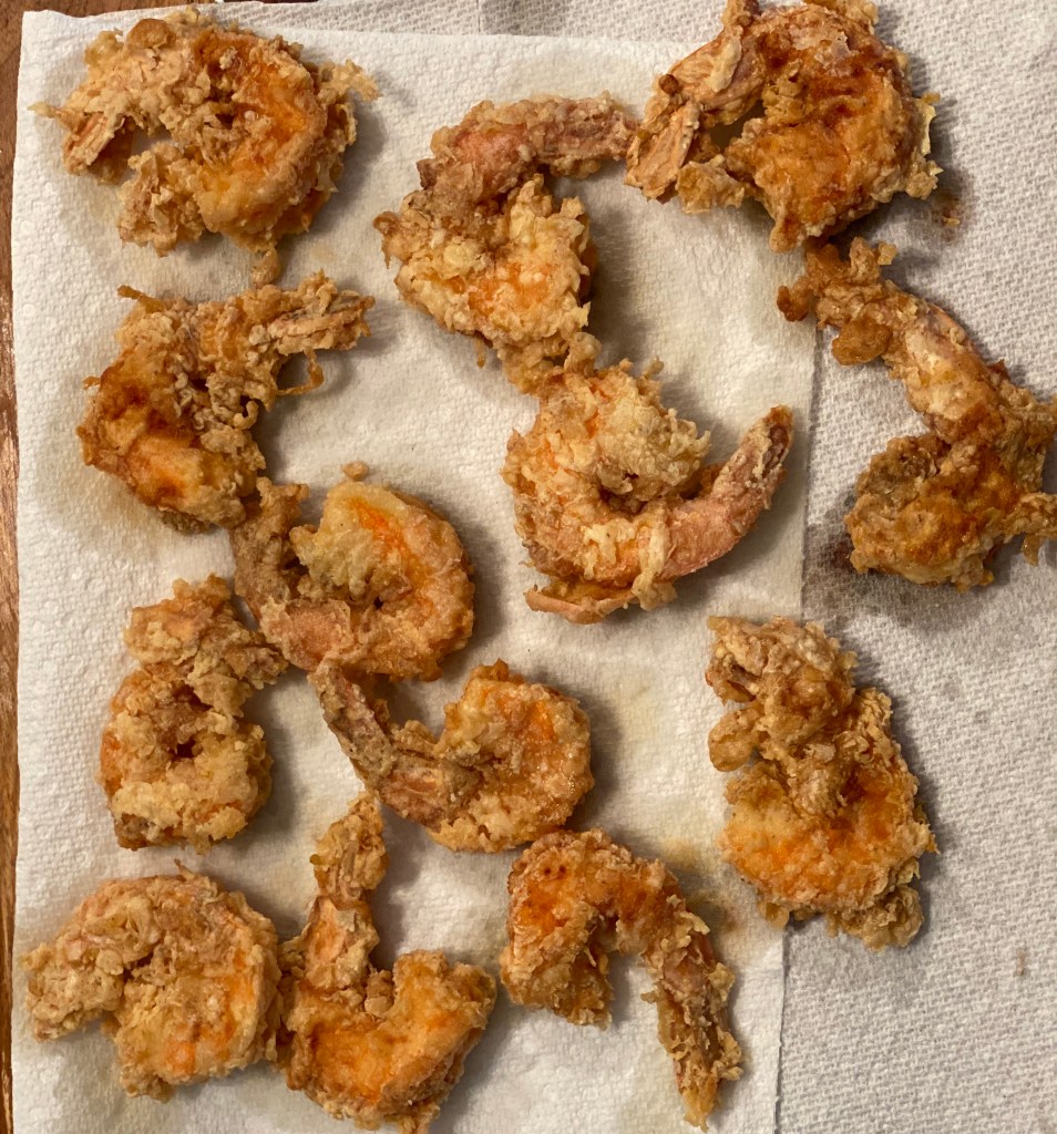 - Heat oil. Release shrimp gently into the hot oil and fry till golden on both sides. Drain on kitchen towels.