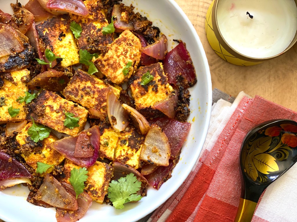 This is a quick recipe using store bought paneer. I do not always make paneer from scratch every time I want to cook with it because I cook paneer a lot and that’s ok! No judgment here 🙂 Of course if you have the time and a lot of whole milk ready, you can always make the paneer from scratch too. For that check Malai Kofta . Sometimes though when you are in a rush, store bought paneer can be made into a delicious starter or meal simply by using some pantry items. Make it as spicy or as mild as you want @sarchakra