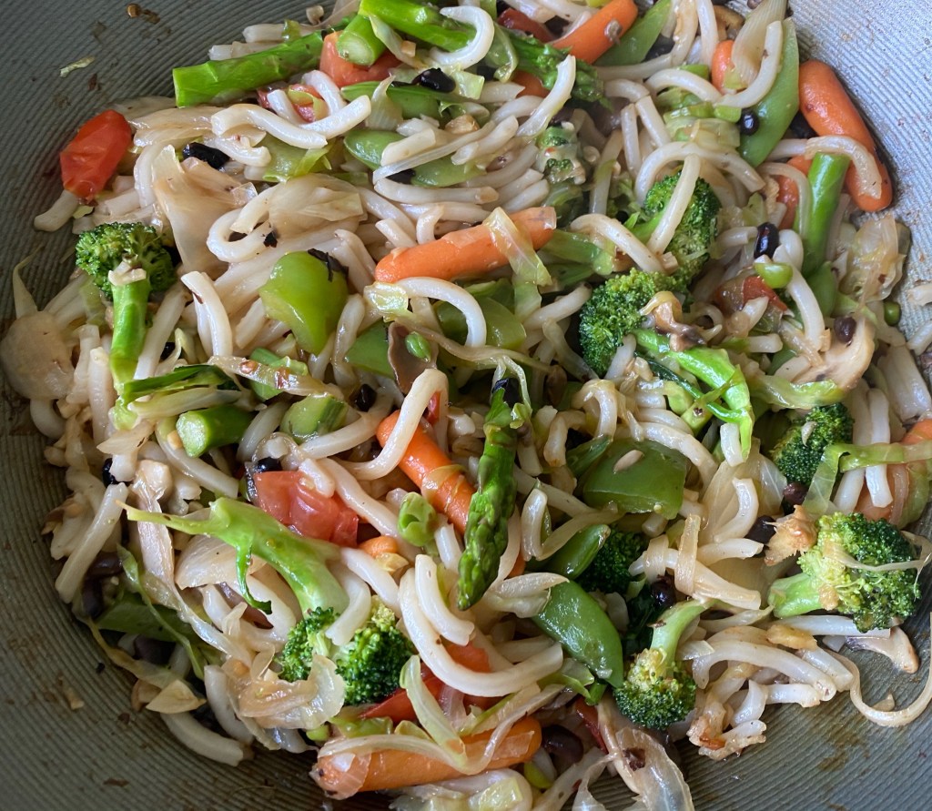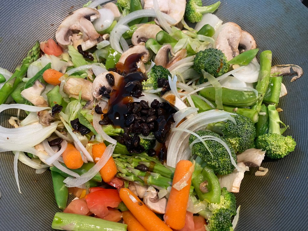 Douchi, or Chinese salted black beans are made by fermenting and salting black soybeans. This process turns the beans soft and semi-dry. Fermented black beans are quite salty and therefore used sparingly to flavor dishes. In Korea, a similar black bean sauce made from roasted soy beans called chunjang is used in making jjajangmyeon. This is a vegetarian version without any meats. This was a great way to eat a ton of vegetables I bought this week in this quick stir fry. It is not only heathy, it’s delicious too. I served this with Fried Tofu but it can be served on its own too. @sarchakra