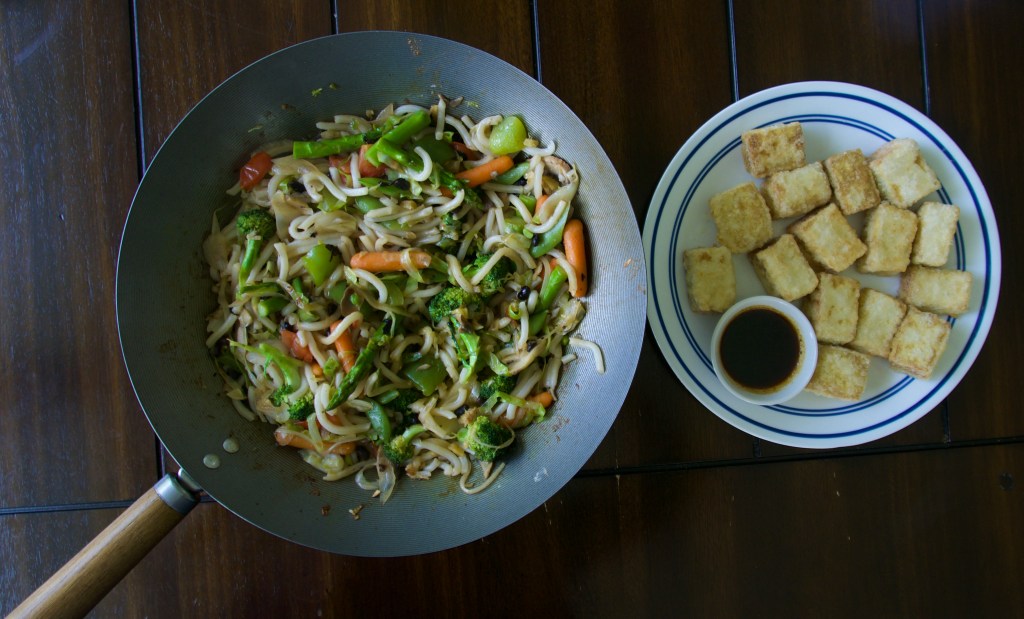 I made the tofu separately to serve with this dish. See Fried Tofu.