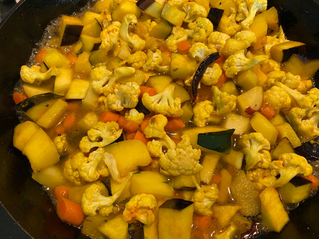 What is bright yellow, simple and delicious? A Bengali Torkari of course. Torkari is a dry curry and Panch (Five) Mishali (Mix) is a medley of five vegetables. Almost any vegetable can be used in this mixed vegetable recipe which makes it pretty versatile. The special flavor is of course the ‘Panch Phoron’ – equal quantities of cumin seeds, nigella seeds, fennel seeds, black mustard seeds and a pinch of fenugreek seeds. Radhuni (celery seeds) can also be used in place of black mustard seeds and if using radhuni use very sparingly like fenugreek as a little goes a very long way with these two spices. The recipe is simple but flavorful and goes well with rice and plain dal @sarchakra