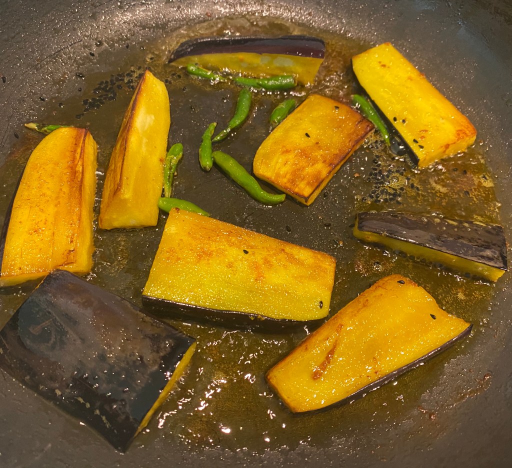 - In the rest of the oil sauté the eggplant slices.