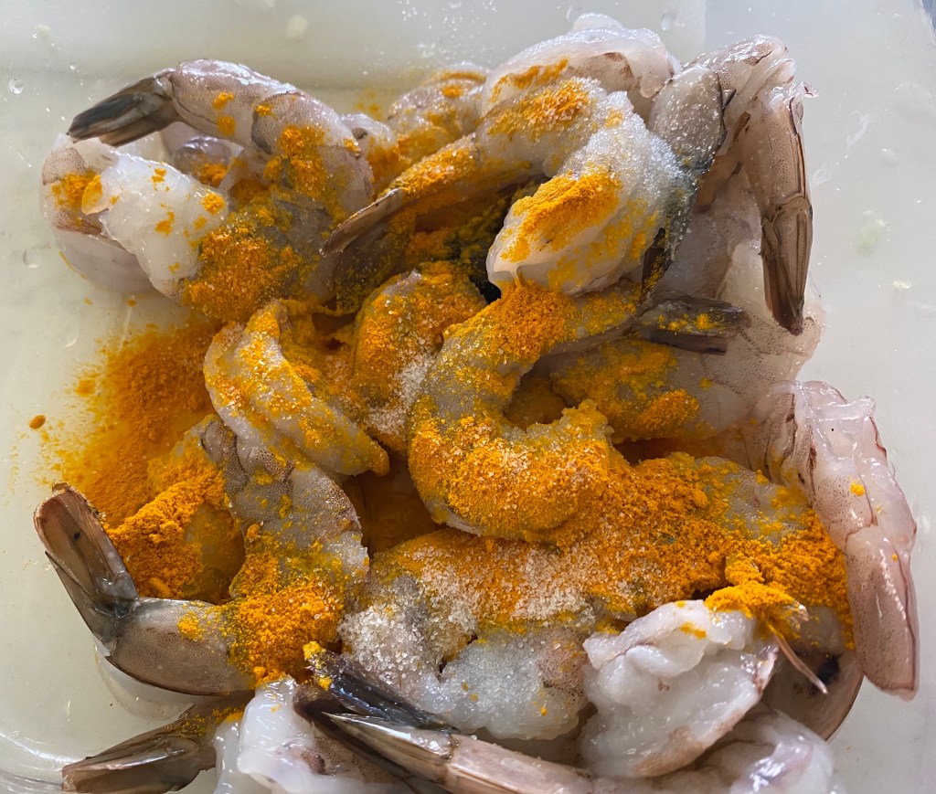 - Heat oil. Sauté shrimp for a few seconds on both sides till pink. Remove and reserve.