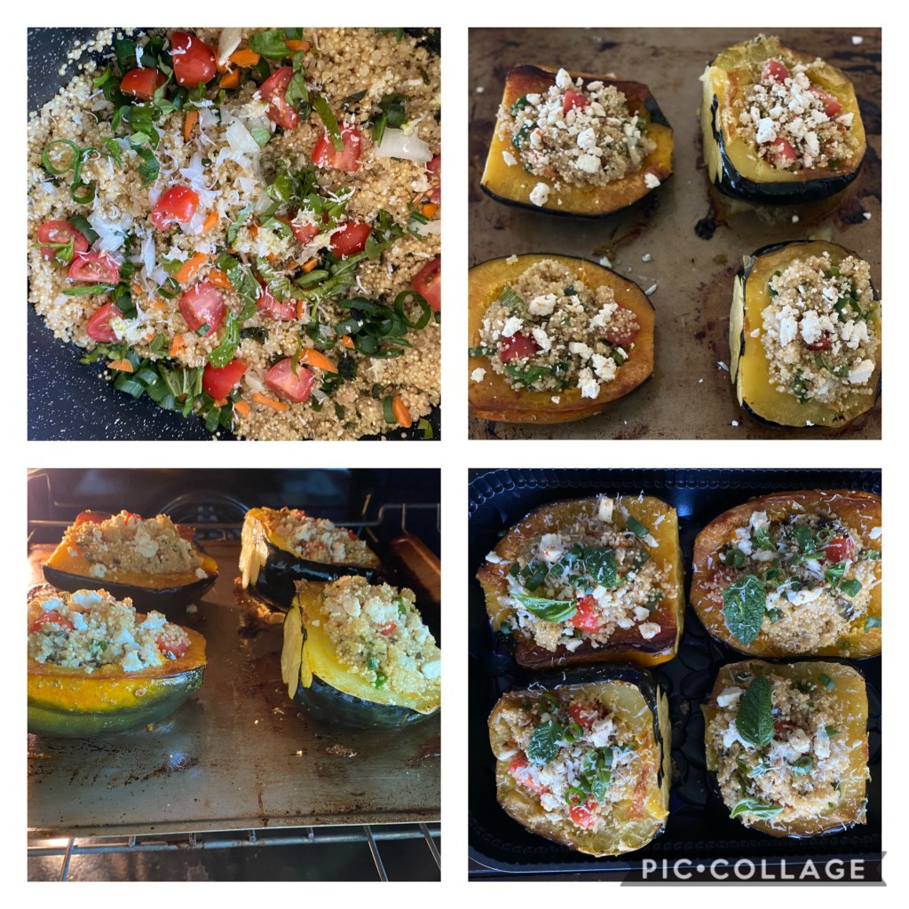 Since I have an abundance of acorn squash this year from my vegetable patch, this was a great way to use some up. This is a super healthy recipe that does not compromise on taste as healthy food does not mean tasteless food. The quinoa salad that forms the main filling of the squash can be eaten separately too. @sarchakra