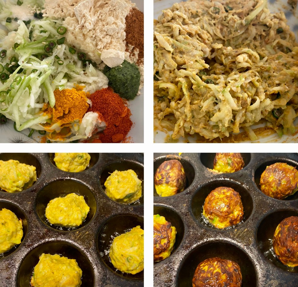 Some vegetarian food is so good that you would not miss any non veg food for a single minute. This is one of those recipes. Lauki or bottle gourd (also called Calabash) is cooked in many places in the world from East Asia to Southeast Asia to South Asia. In India it is known as doodhi, ghiya or lauki. Interestingly, lauki can be used to make both savory and sweet items of food. It is rich in fiber and aids in indigestion. Being low in calories it is therefore also good to eat when you are on a diet. Instead of frying, these koftas are fried with a little oil in the ebelskiver pan @sarchakra