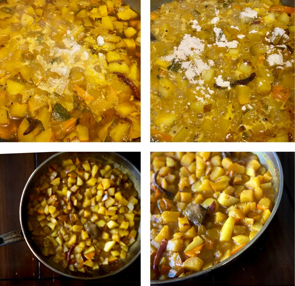 - Cover and cook on a low flame till the squash and potatoes are done.