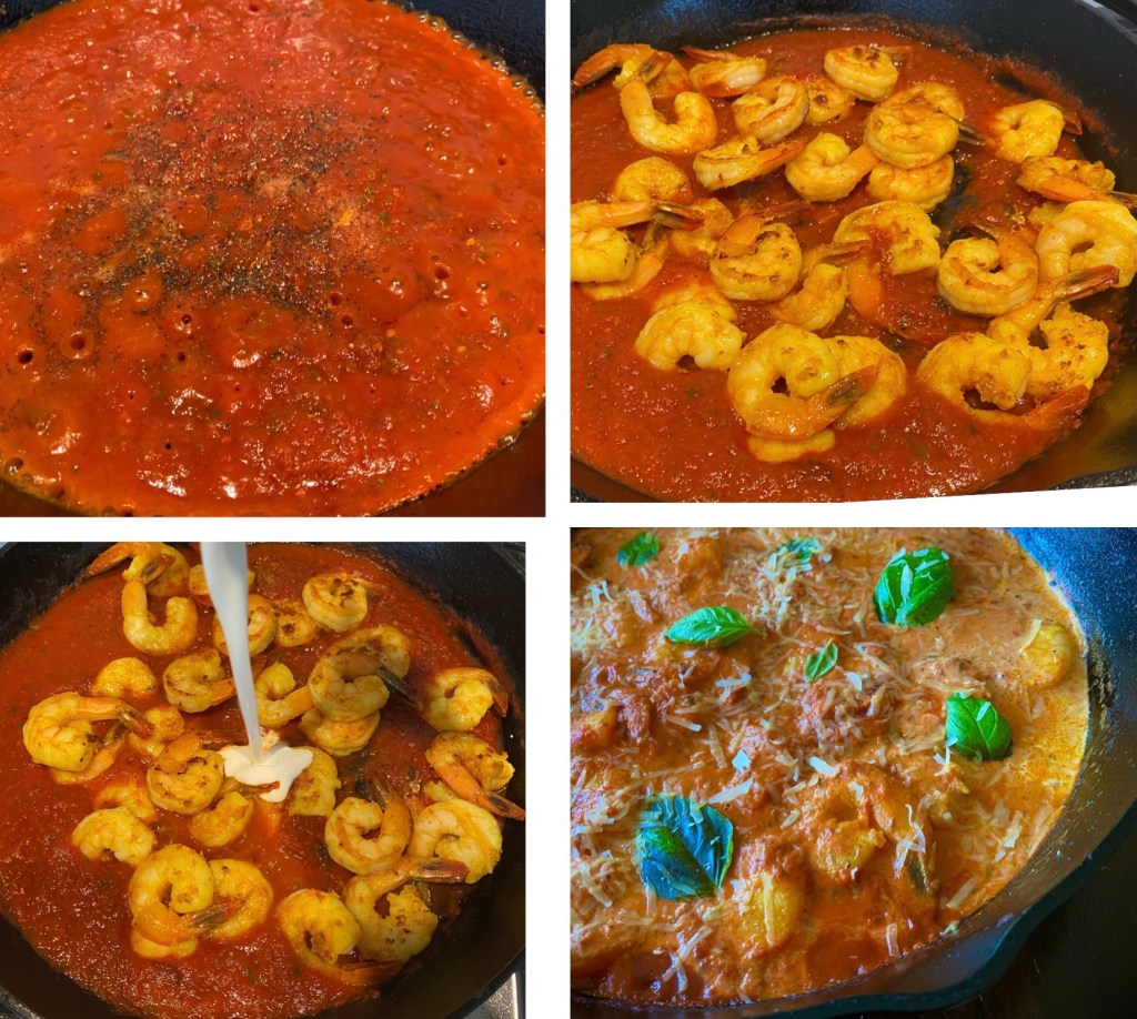 - Pour in 1 cup of water. Simmer for 5-6 minutes. Put in the sautéd prawns.