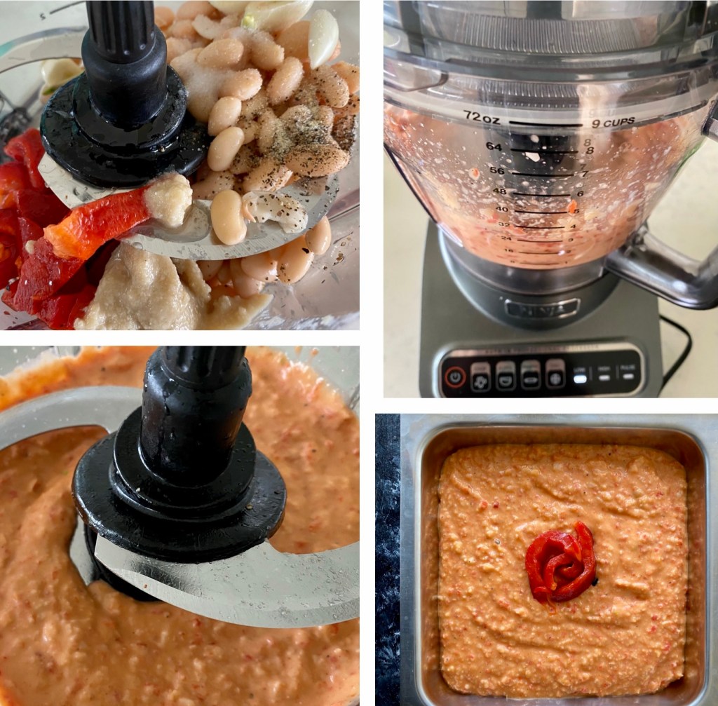 - Discard water from the cannellini beans and rinse the beans. In a food add cannellini beans, most of the roasted red pepper, onion flakes, garlic, sea salt, tahini, olive oil, black pepper, lemon juice. Blitz to a paste.
