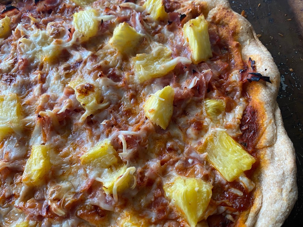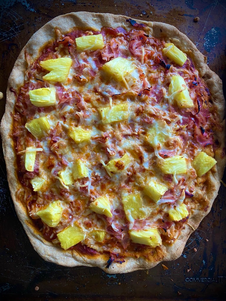 Ham and Pineapple Pizza is a great recipe to make for the kids especially. It is easy, colorful and delicious. I used a fresh juicy pineapple but you can most definitely use canned pineapples too. Make the pizza dough the night before for the dough to rise beautifully @sarchakra