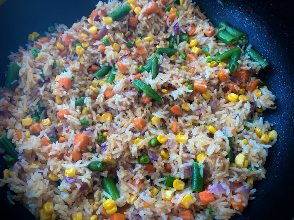 Chinese Fried Rice (Yangzhou or Yang Chow) is simple, delicious, versatile and adaptable. This vegetarian dish can easily be made non vegetarian with the addition of meat, eggs, crab meat, lamb, sausage or shrimp. It can be eaten on its own or as an accompaniment to a main dish @sarchakra