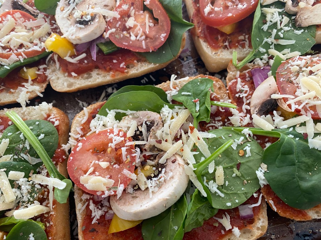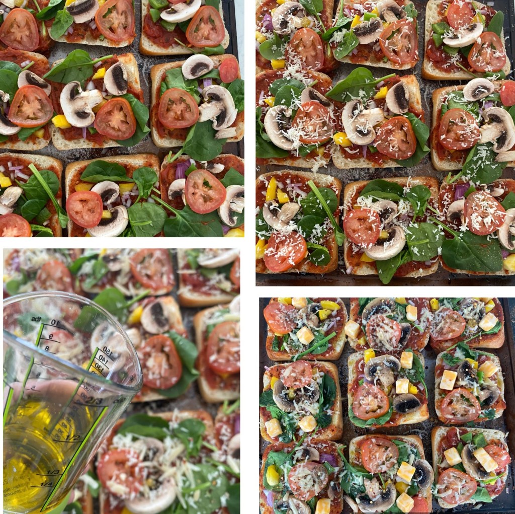 Ciabatta Pizza is a quick weeknight dinner or lunch recipe that comes together very quickly. It is also a great way of feeding kids and adults healthy. Look at all those fresh vegetables you can use to make this a super heathy but also delicious meal @sarchakra