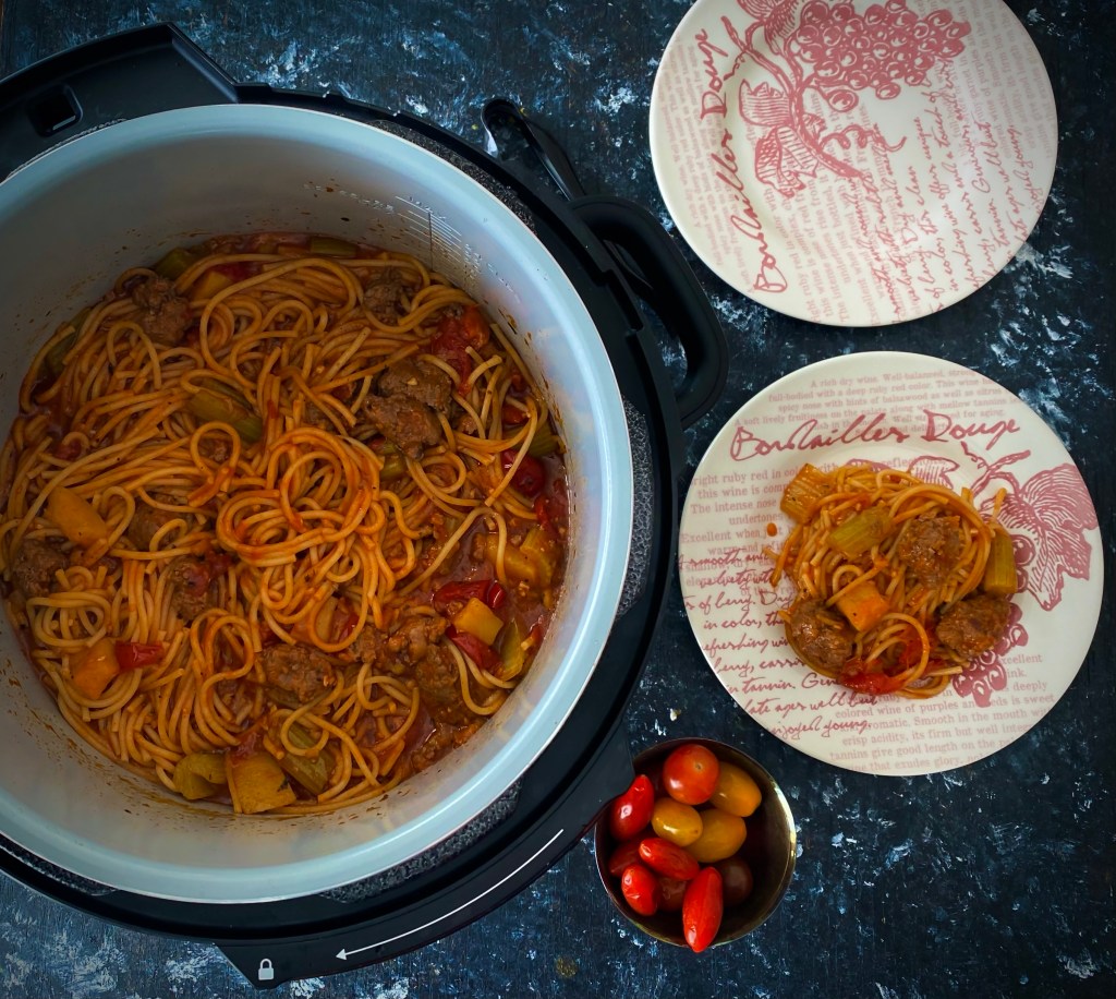 This ground lamb linguine is comfort food done in record time that tastes like you took hours to make it. This is a great option if cooking especially for a big crowd of family or guests. As I am cooking more and more using the Ninja Foodie I’m realizing how silly it was that I stayed away from this gadget for more than a year after I actually bought it! It really does shorten your time in the kitchen without compromising on the taste! @sarchakra