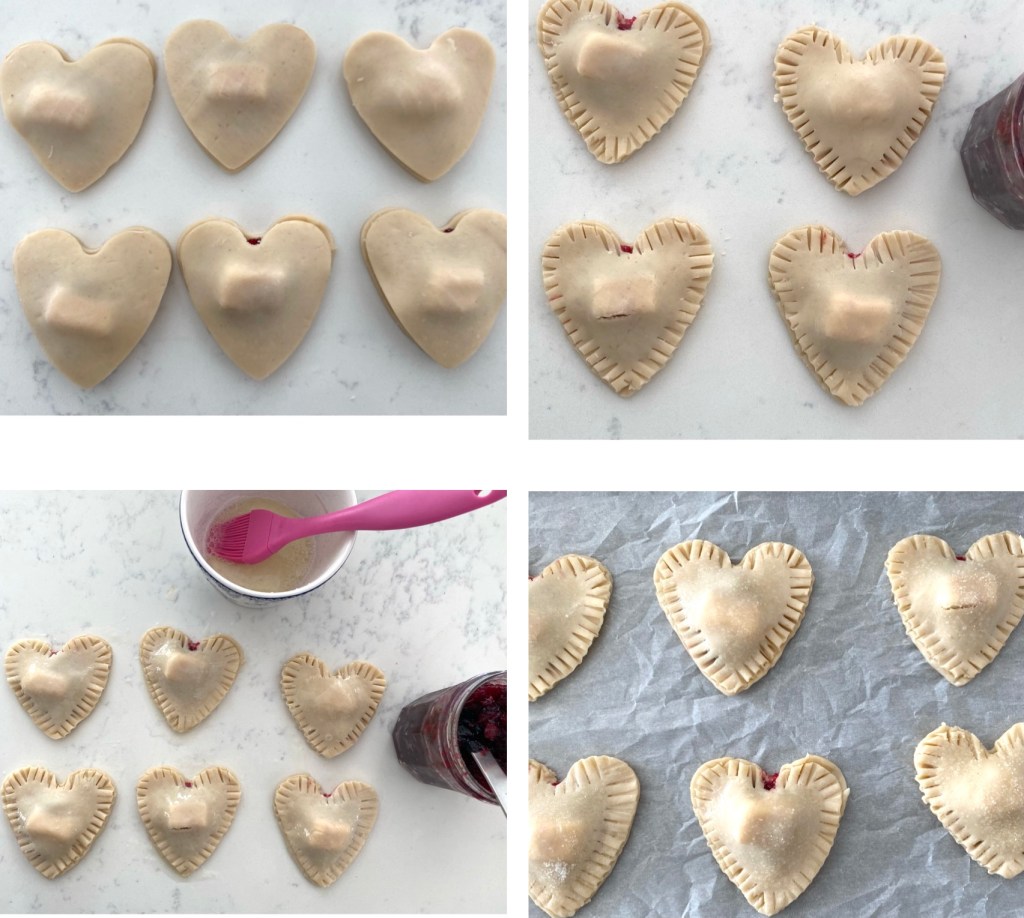 - Roll out the dough. Use a cookie cutter to cut out heart shapes.