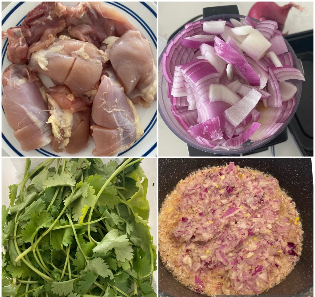 - Chicken ½ lb (4 thighs halved)