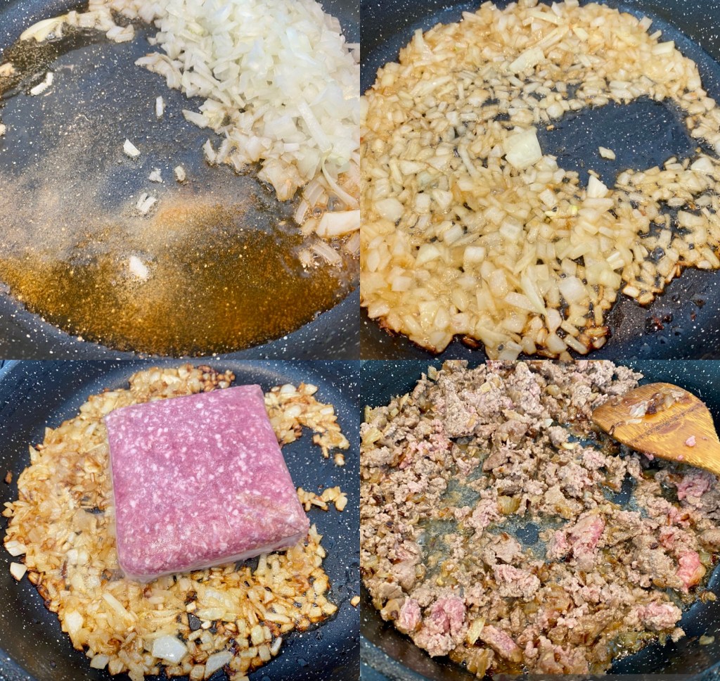- Add chopped onions. Cook for a few minutes till the onion starts to turn golden.