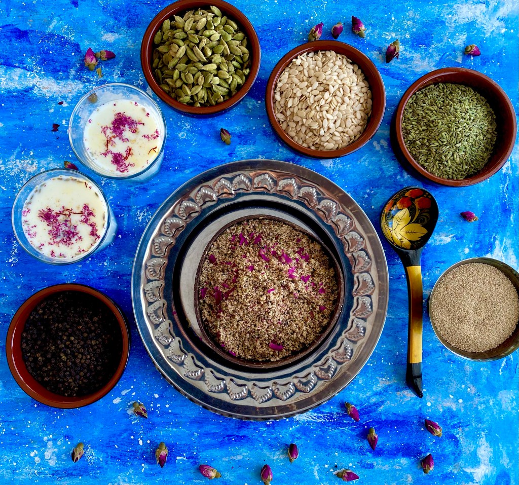 Thandai powder is made with a special mix of Indian nuts, seeds and spices. It is then used to make a cold milk drink. This aromatic and refreshing drink is very popular in Northern India especially during the Hindu festival season like Holi or Shivaratri @sarchakra