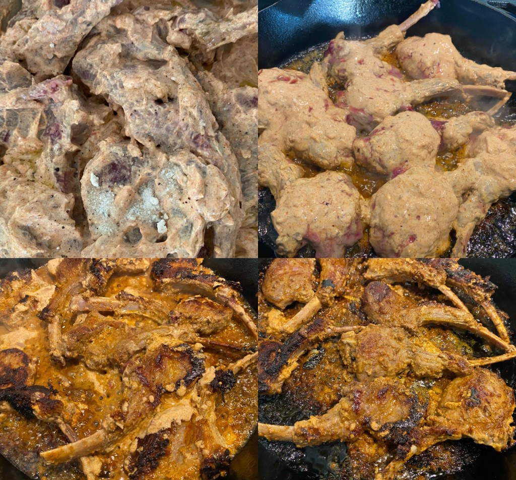 - Cook the lamb chops 4 mins on each sides till seared.