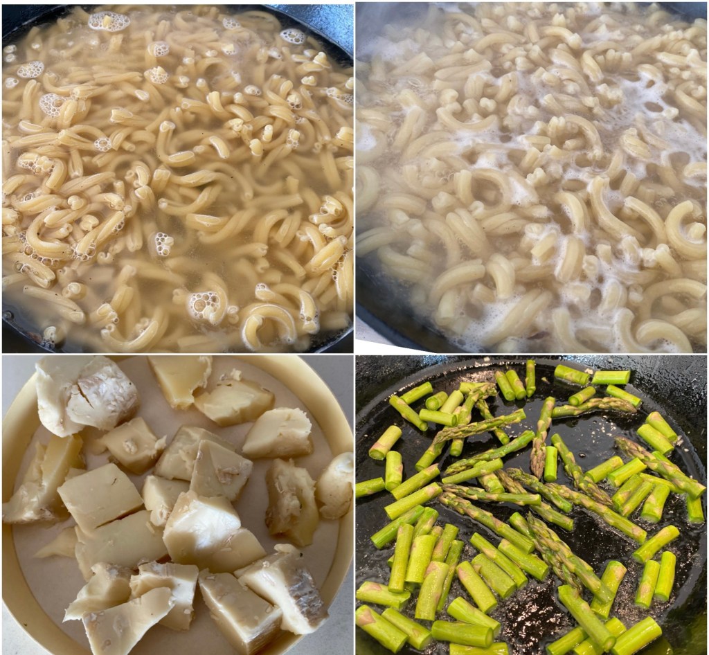 - Cook pasta according to box directions. Reserve ½ cup of pasta water.