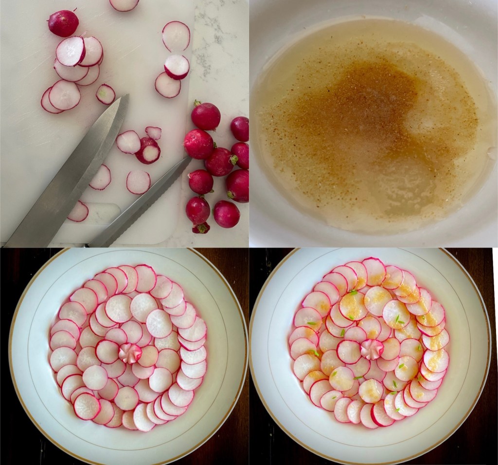 - Cut the radish in circles using a sharp knife or mandolin slicer.