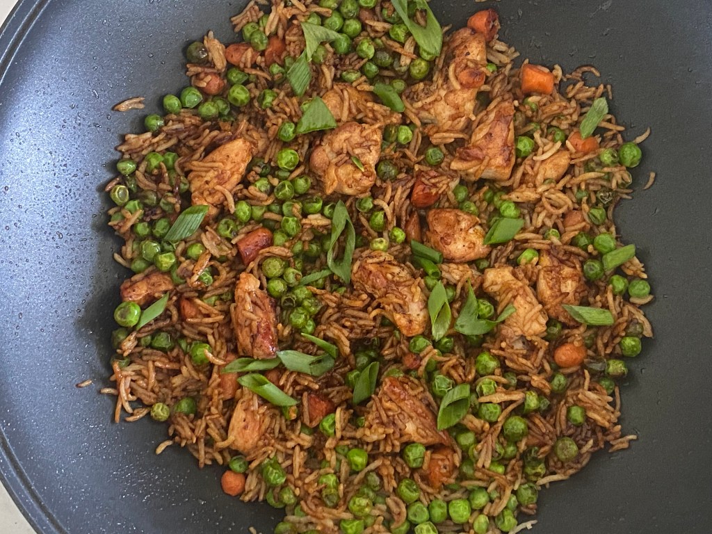 Chicken Fried Rice is an easy recipe with fresh chicken, leftover rice and some condiments from the pantry. From start to finish it is ready within 15 minutes. It is great way to make a fresh lunch or dinner for the kids and a sneaky way to add some vegetables to a meal too @sarchakra