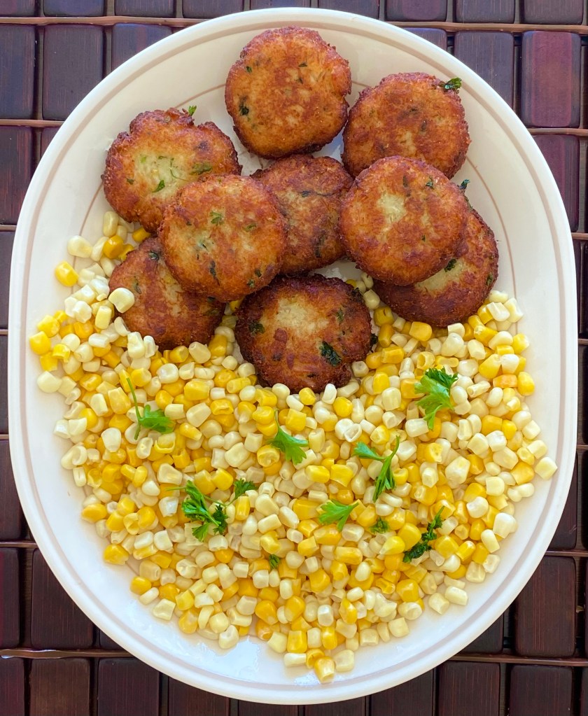 - Serve with tartar sauce or on a bed of Creamed Sweetcorn.