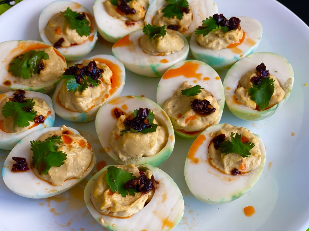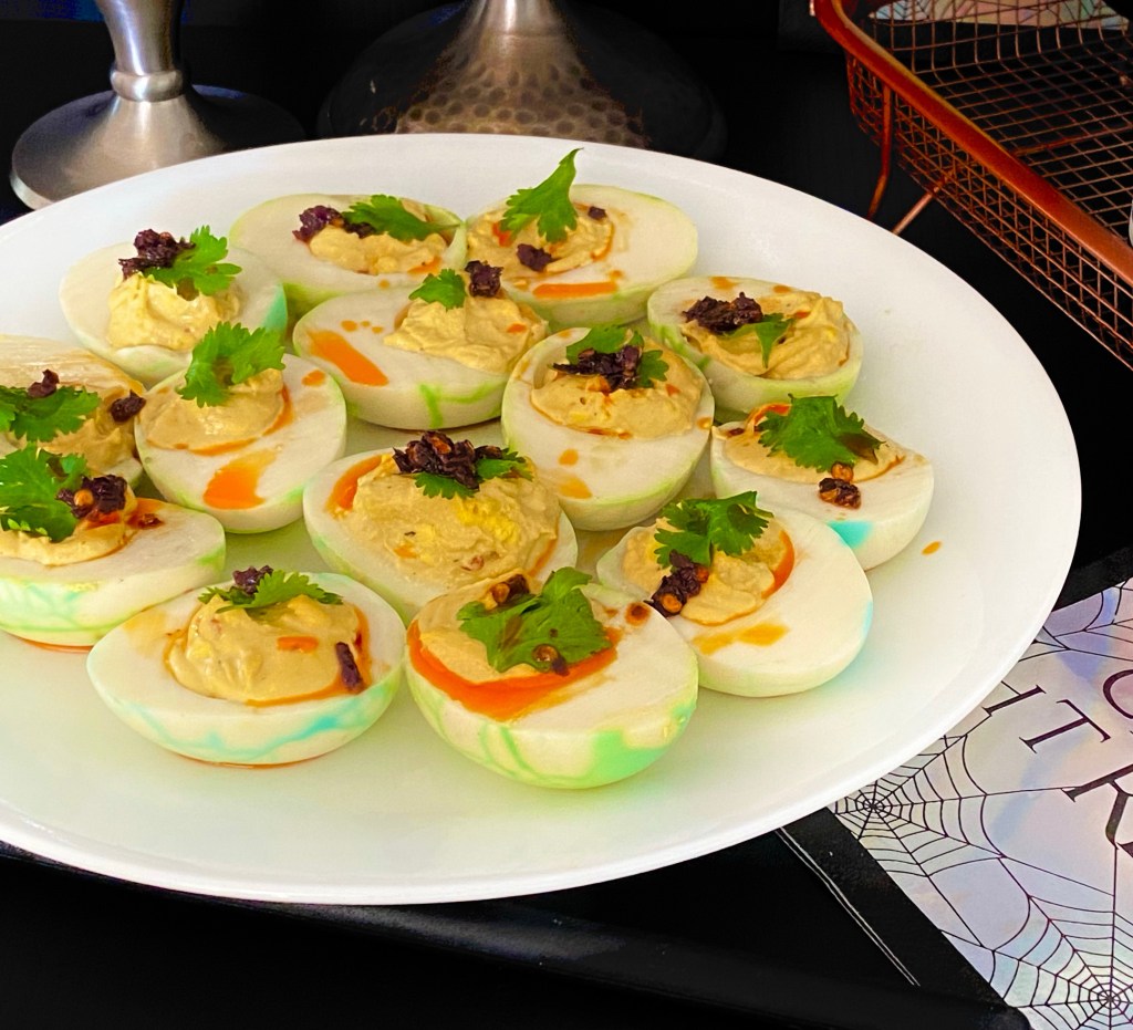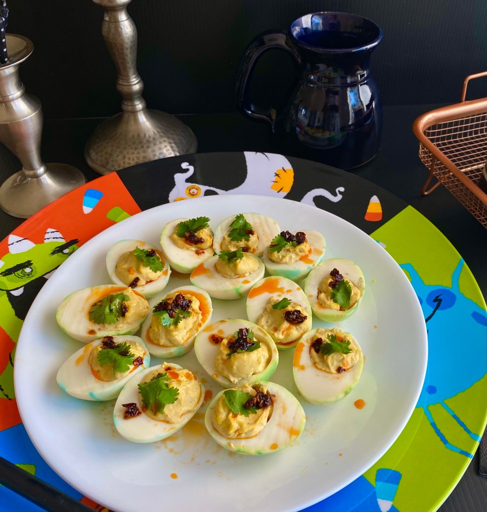 These cute deviled eggs with an Asian twist is a conversation starter and an appetizer you would want to reach out more than once I tell ya! The best part is, it is super simple and comes together without much to do. Always make more than you need because I popped a few in my mouth when I was making this. It is so hard to resist! It melts in your mouth and then-wait for it- it gives that spicy kick. So this Halloween try it and let me know if you like it 😊 @sarchakra