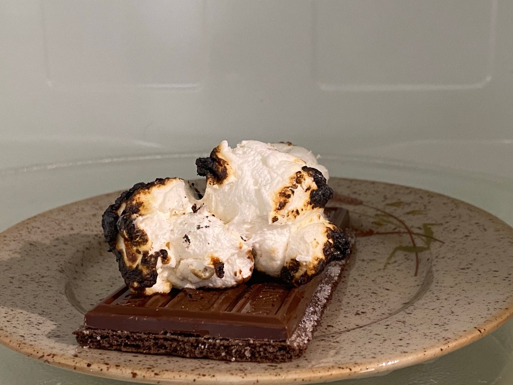 - Microwave the whole thing (including the toasted marshmallows) for 15 seconds. It will start to expand.