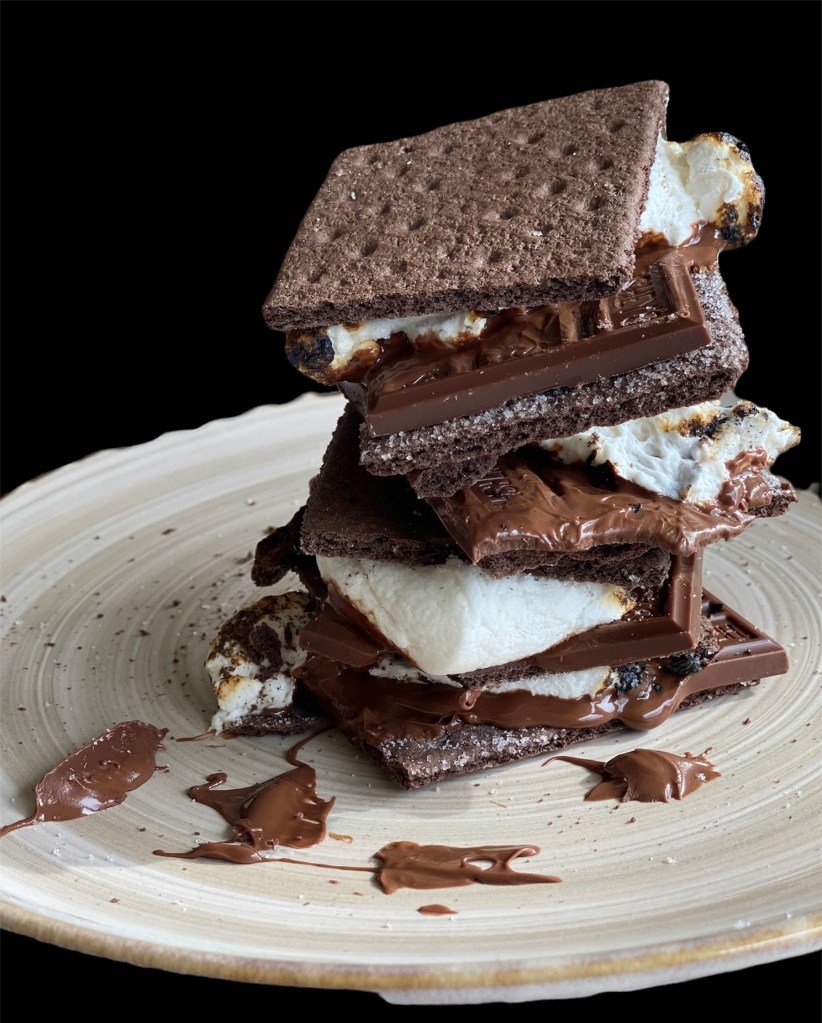 - Now place the other slice of the graham cracker and press gently. All that oozy deliciousness is ready to be chomped up!!