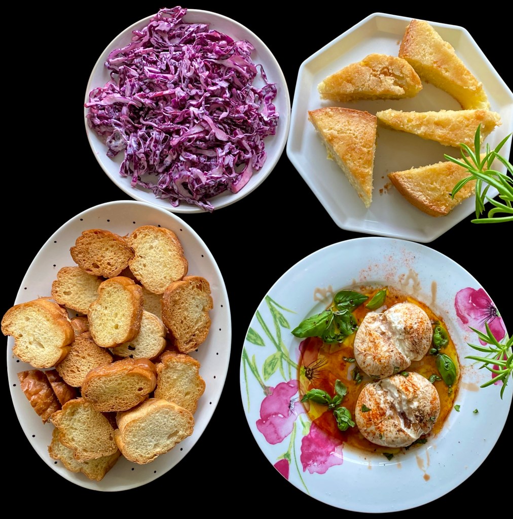 I served the Burrata with some Red Cabbage Salad and Lemon Olive Oil Cake as a sweet end to the lunch (recipes coming soon).